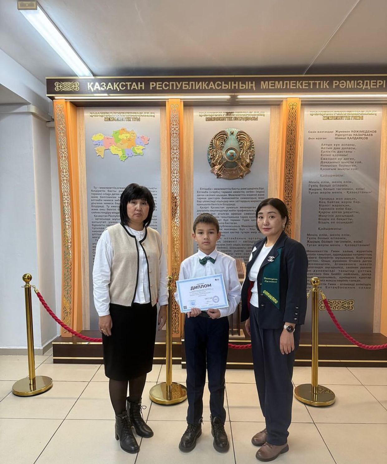 «К. Ушинский атындағы №7 орта мектеп” КММ-нің 3”Ә” сынып оқушысы Ришат Мустафа қалалық “Алтын сақа” математикалық олимпиадасынан 1-орын