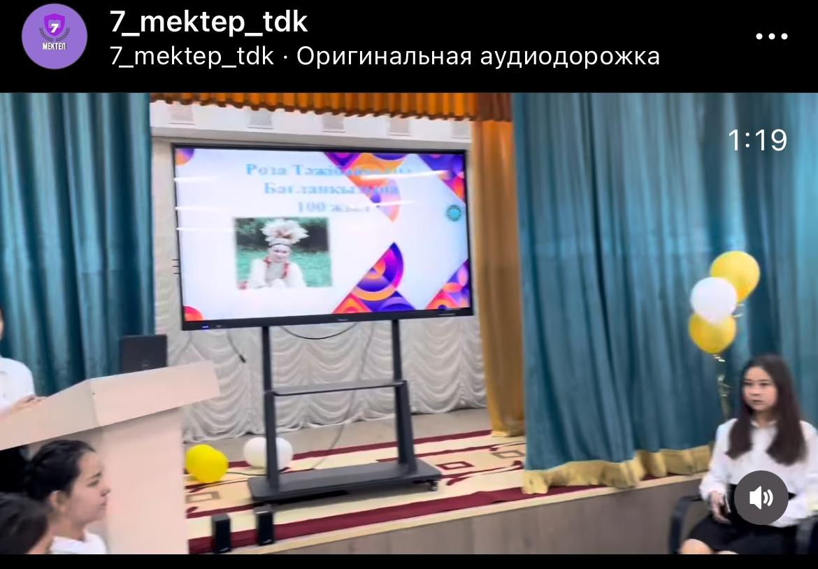 Қазақстан және КСРО халқының әртісі, халық қаhарманы, әншісі Роза Тәжібайқызы Бағланованың 100 жылдығына арналған іс-шара өтті. Іс-шара барысында әншінің өмірі мен шығармашылығына тоқталып, оқушыларымыз «karaoke party» -да әндерін орындады.