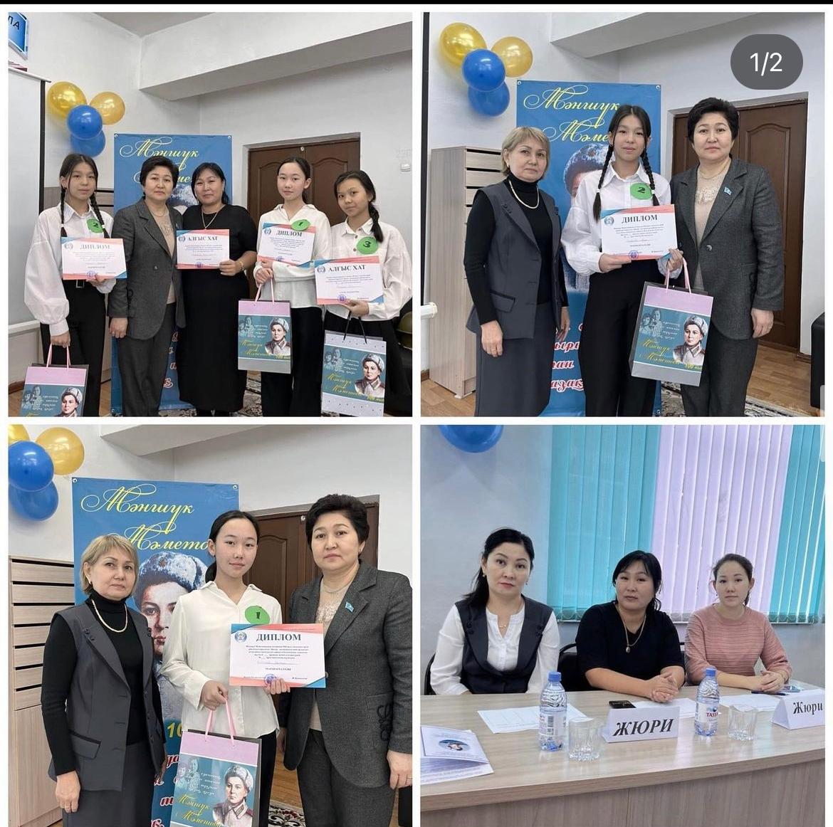 "Жетісу облысы білім басқармасының Талдықорған қаласы бойынша білім бөлімі" мемлекеттік мекемесінің "№2- орта мектеп" КММ "Тарих тағлымы" жоба жоспарына сәйкес 02.02.2022 ж. күні қалалық Мәншүк Мәметованың туғанына 100 жыл толуына орай ұйымдастырылған "Қазақ даласының қайсар қызы" атты іс-шара №2,7,8 тірек мектептер арасында ұйымдастырылды. Іс-шараның мақсаты: аты аңызға айналып, ерлік ісі барша ұлтты таң қалдырып, есімі тарих беттерінде алтын әріппен өрнектелген ерліктің мәңгі алауын жаққан қазақтың қызы Мәншүк Мәметованың жарқын өмірі және Ұлы Отан соғысындағы ерлік істерін ұрпаққа өнеге етіп, паш ету. №2,7,8 тірек мектептердің 9-сынып оқушылары арасында интеллектуалды сайыс өткізілді. І- орын №7 ОМ Байбулатова Еркежан, ІІІ- орын №7 ОМ Толеуханова Азиза, Алғыс хатпен Асхатқызы Ұлар марапатталды. Жетекшісі: Молдабаева Жанна Маратовна қалалық білім бөлімінің алғыс хатымен марапатталды.
