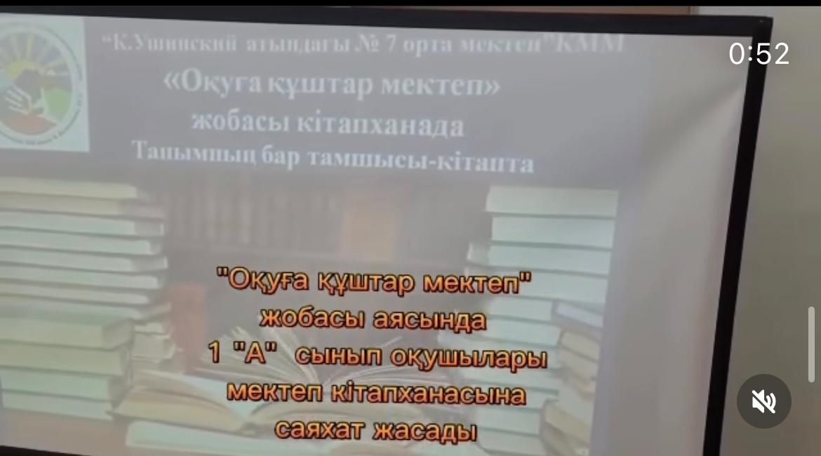 «Оқуға құштар мектеп» жобасы аясында 1 «А» сынып оқушылары мектеп кітапханасына саяхат жасады. Балалар керемет көңіл күйде болды. Оқуға деген қызығушылықтары одан әрі артты. » К.Ушинский атындағы №7 орта мектеп. Талдықорған
