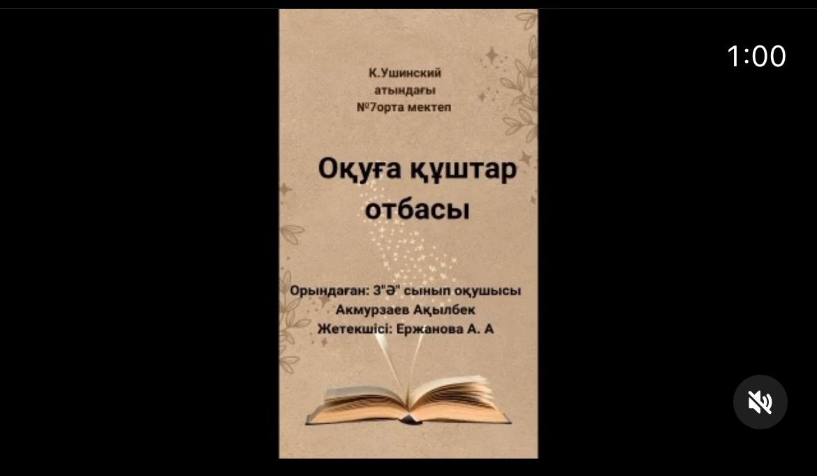 К.Ушинский атындағы №7 орта мектеп. Талдықорған » Ақпарат » «Оқуға құштар мектеп» жобасы аясында отбасымен кітап оқуды дамыту мақсатында 3»Ә»сынып оқушысы Акмуразев Ақылбектің «Оқуға құштар отбасы»мен оқу сәтінен үзінді