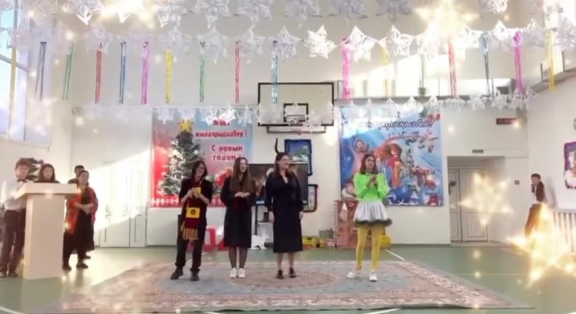 ученики 10 «Б» класса, в рамках проекта «Знакомство с Англией», поздравили учеников КГУ «СШ №7 имени К.Ушинского» с наступающим Новым годом и организовали поздравление от Санта Клауса. » К.Ушинский атындағы №7 орта мектеп. Талдықорған