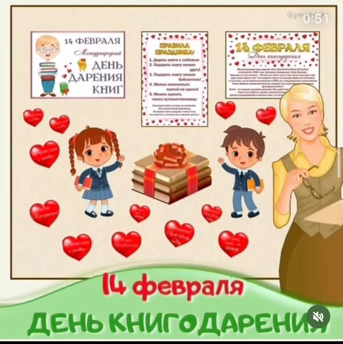 Құрметті кітап сүйер қауым!14-ақпан “Кітапханаға кітап мейрамы.Бұл мерекенің мақсаты: Барлық адамзатты кітап оқуға шақыратын мереке.Сол себепті бір- бірімізге кітап сыйлаған абзал. » К.Ушинский атындағы №7 орта мектеп. Талдықорған