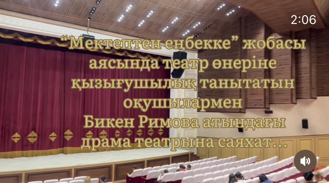 11 февраль 2023 0 1 2 3 4 5 "Мектептен еңбекке” жобасы аясында театр өнеріне қызығушылық танытқан оқушылармен Бикен Римова атындағы драма театрына саяхат "Мектептен еңбекке” жобасы аясында театр өнеріне қызығушылық танытқан оқушылармен Бикен Римова атындағы драма театрына саяхат