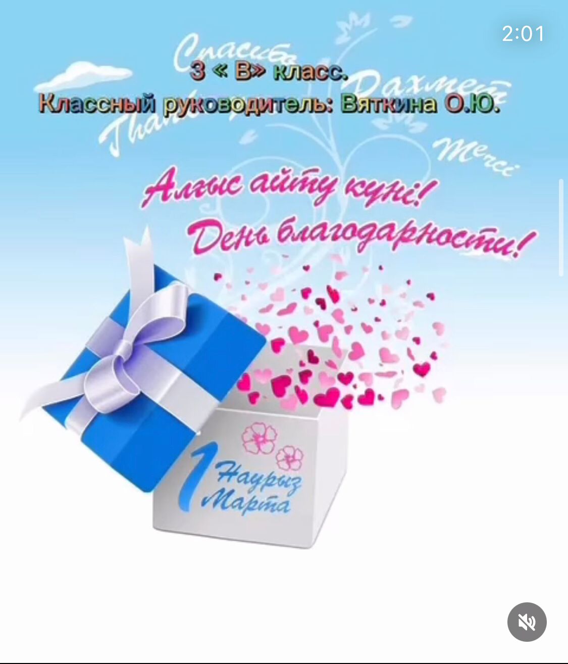 03 март 2023 0 1 2 3 4 5 Учащиеся 3 « В» класса поздравляют всех с праздником « Днем благодарности». Учащиеся 3 « В» класса поздравляют всех с праздником « Днем благодарности».