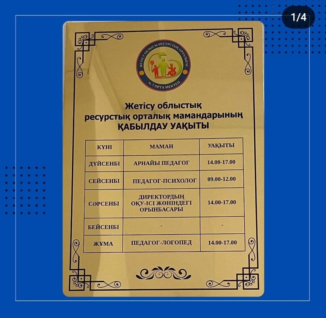 «Жетісу облысы білім басқармасының Талдықорған қаласы бойынша білім бөлімі»ММ «К.Ушинский атындағы №7 орта мектеп» КММ-де Жетісу облыстық инклюзивті қолдау тәжірибені және тәжірибе алмасу ресурстық орталығы ашылды.