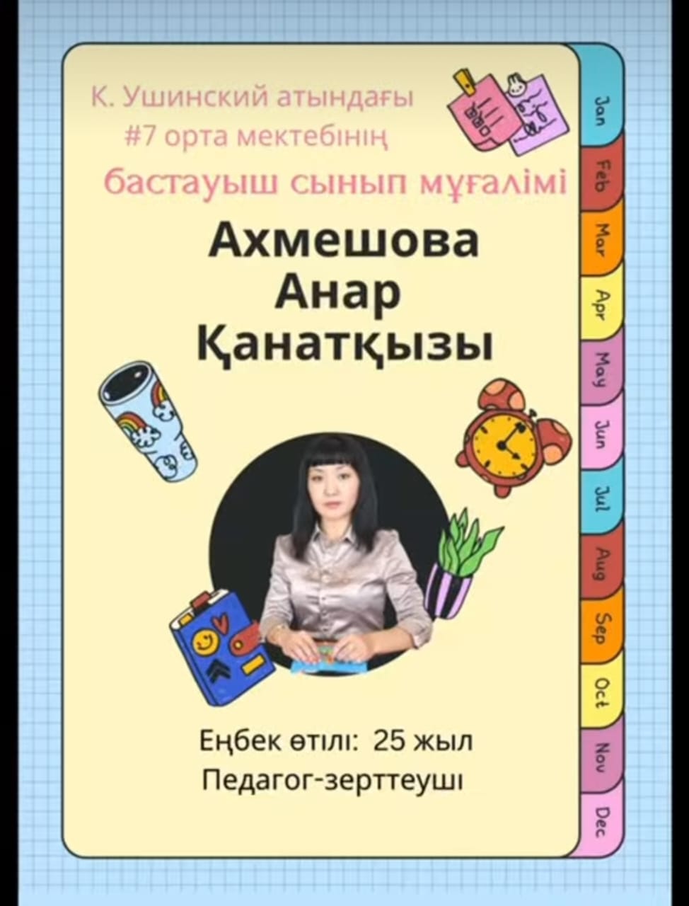 27 апрель 2023 0 1 2 3 4 5 2023-2024 оқу жылында 1 сыныпқа қабылдайтын ұстаз - Ахмешова Анар Қанатқызы. 2023-2024 оқу жылында 1 сыныпқа қабылдайтын ұстаз - Ахмешова Анар Қанатқызы.