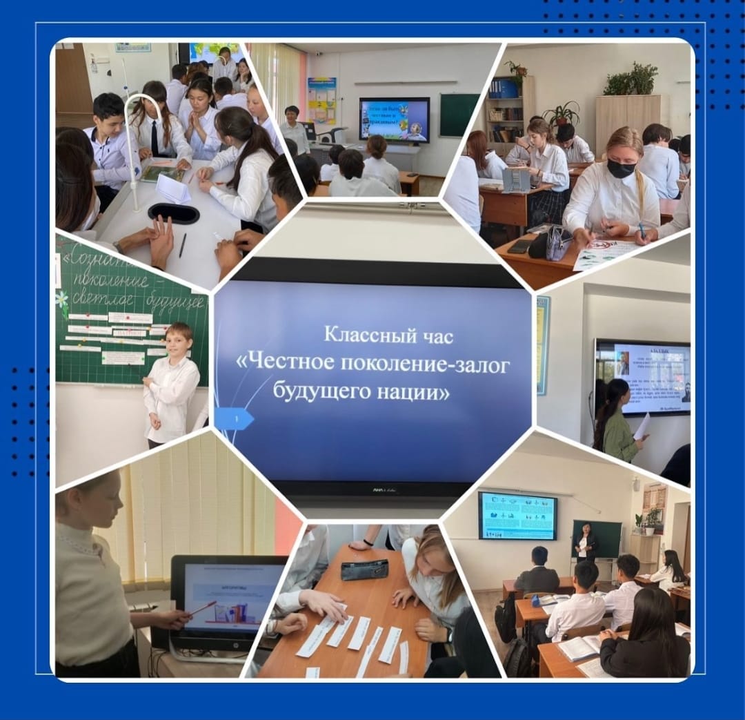 Ағымдағы жылдың 16 мамыр күні 1-11 сынып оқушылары арасында "Адал ұрпақ- ұлт болашағының кепілі" тақырыбында біріңғай сынып сағаттары өткізілді.
