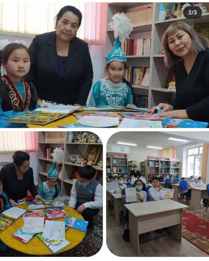 Мектеп кітапханасында кітапхана меңгерушісі Клара Жұмәділқызының ұйымдастыруымен "Оқуға құштар мектеп" жобасы аясында "20 минуттық" оқу акциясы өтуде. Соған байланысты 4 "А" сынып оқушылары, сынып жетекшісі Жанат Төлешовнамен бірге келіп,  оқыған ертегі кітаптарының мазмұнын мазмұндап, сурет бетіне түсіріп, жас оқырмандармен бөлісті.