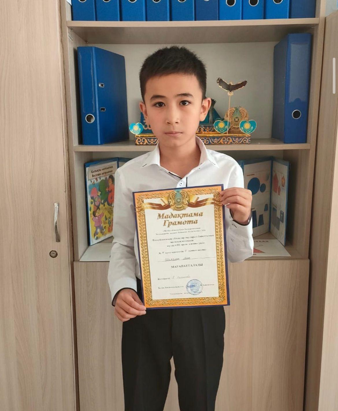 Республикалық балалар оқу байқауының қалалық кезеңінен 3 орын иегері Шаяхмет Аят